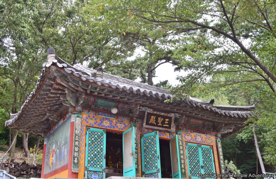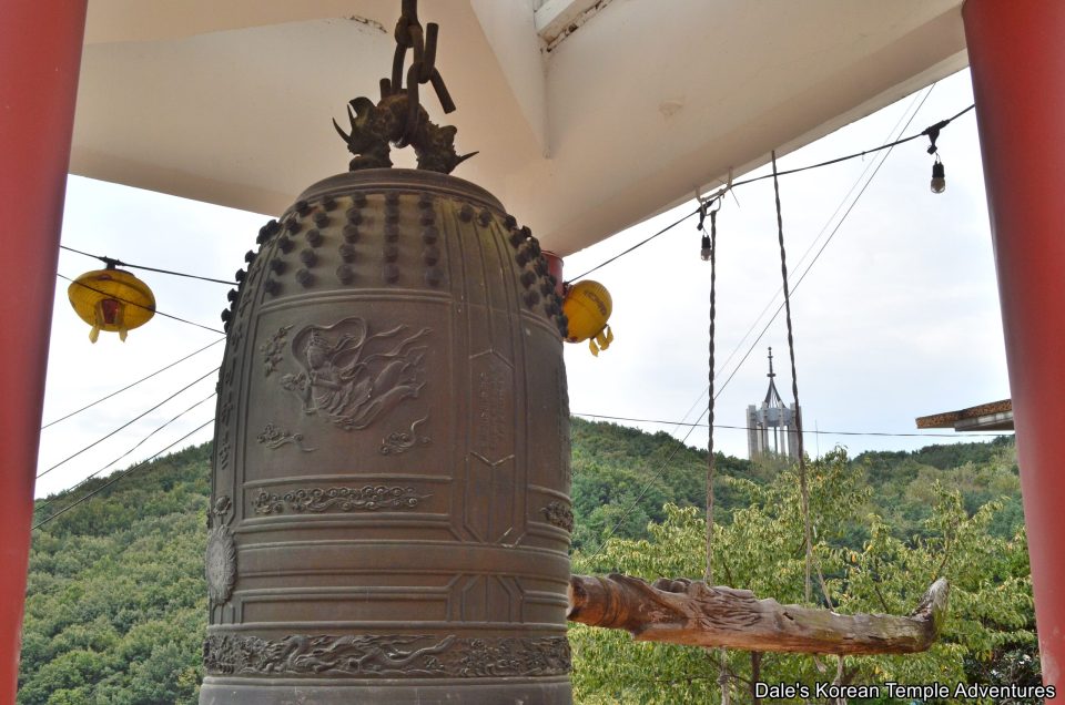 In the temple courtyard, you’ll find a strangely designed three-story wooden pagoda. At the base of this hallow pagoda is the temple’s bell. This might be one of the most unique bell pavilions I’ve seen at a Korean Buddhist temple.